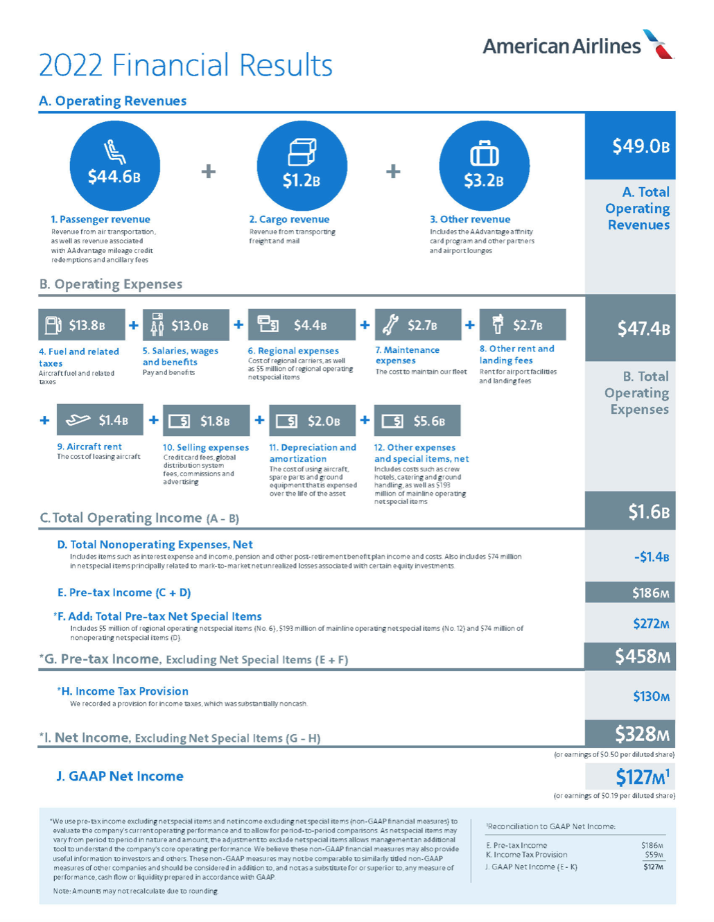 GLOAmerican Airlines Group Inc. (NASDAQ: AAL) today reported its fourth-quarter and full-year 2022 financial results, including: