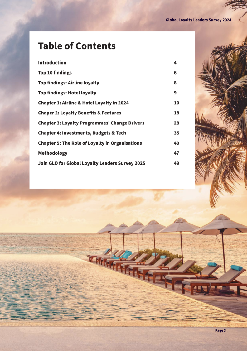 Global Loyalty Organisation (GLO) and Deloitte present the 2024 Global Loyalty Leaders Report, a pioneering deep-dive programmes study that captures the state of loyalty programmes in the airline and hospitality industries based on the survey of global heads of loyalty programs and CMOs of largest global and regional airlines and hotels. This report is a groundbreaking benchmark analysis, offering unique insights into trends, investment priorities, and transformative opportunities shaping loyalty strategies across key markets in the USA, Europe, the Middle East, and Asia.