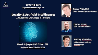 Home » Articles » GLO Event / Expert Roundtable. Loyalty & AI: Applications, Challenges & Solutions – March 1 @ 4pm GMT / 11am EST.