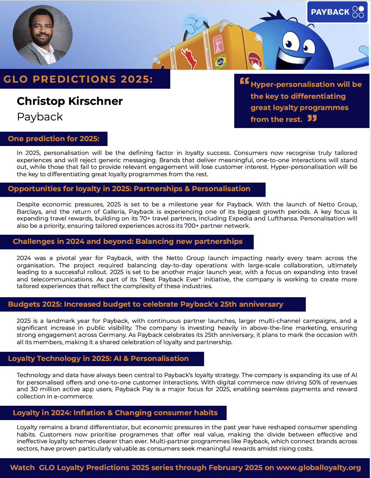 Insights from Christoph Kirschner, Director Marketplace Digital Sales, PAYBACK, discussing the key trends shaping loyalty, the opportunities and challenges ahead, and how technology will redefine the industry in 2025.