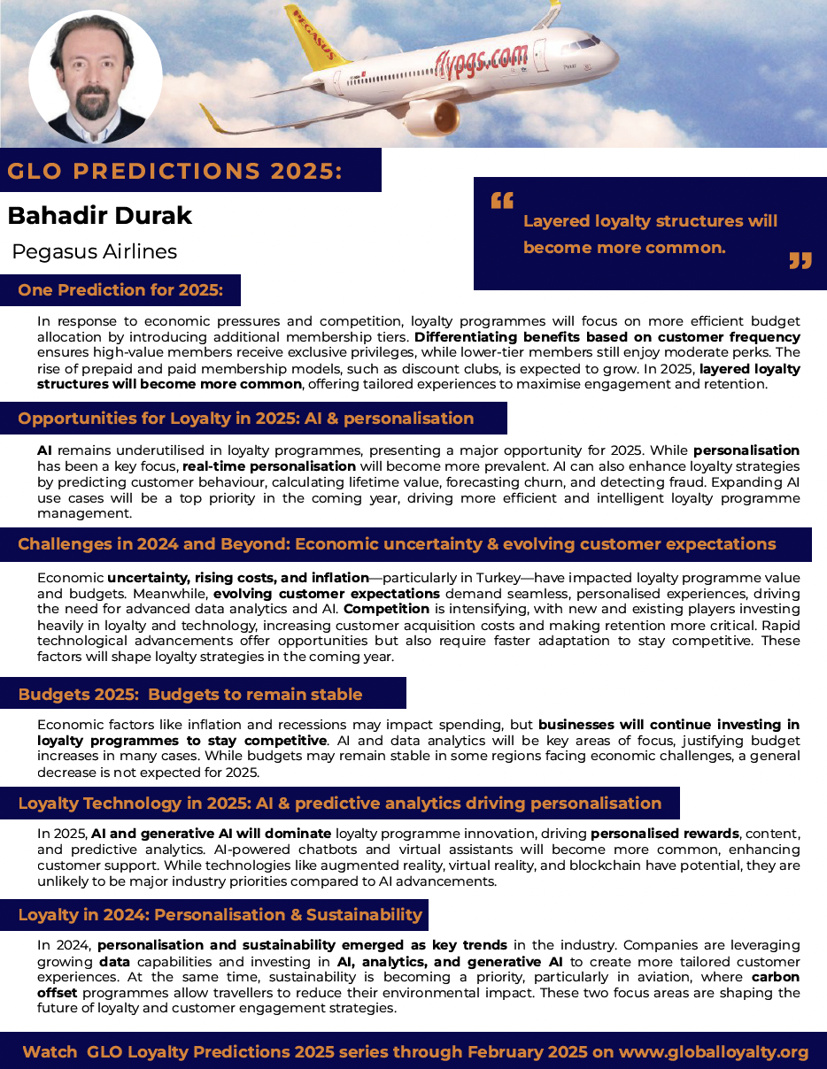 Insights from Bahadir Durak, Group Head of Data Analytics and Loyalty Programs, Pegasus Airlines, discussing the key trends shaping loyalty, the opportunities and challenges ahead, and how technology will redefine the industry in 2025.