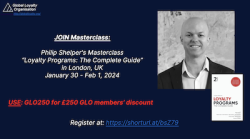 JOIN Masterclass: Philip Shelper’s Masterclass “Loyalty Programs: The Complete Masterclass” in London, UK January 30 – Feb 1, 2024USE: GLO250 for £250 GLO members’ discount. Read course details. 20 December, 2023 10:00 |