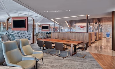 Delta Sky Club’s new location on Newark’s Terminal A reflects city’s industrial past Delta’s stylish, new 7,000-plus-square-foot space seats over 200 guests (an increase of 50 from the Terminal B Club) and includes elevated views of the newly built Terminal A and airfield. The EWR Terminal A Club joins recently opened lounges in neighboring NYC airports. |