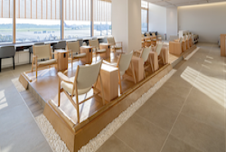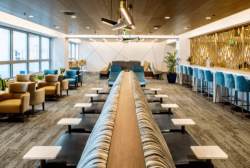 Delta Sky Club levels up in Miami with major lounge expansion The expansion’s design takes inspiration from Miami’s bright colors and sunny beaches. A new mosaic pays homage to the city’s classic Art Deco architecture, while the overall color palette reflects the nearby turquoise waters, blue sky, and white and gold accents seen in south Florida designs.