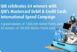 QIB has announced the winners of its 2025 Mastercard International Spend Campaign, awarding a total of 10 million Absher loyalty points. Four grand winners earned 1 million points each, while 60 monthly winners received 100,000 points. Absher points can be redeemed for flights, hotels, shopping, bills, and more. QIB says the campaign supports its goal of offering rewarding, seamless digital payment experiences. (Image QIB