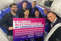 Wizz Air celebrates 6 million passengers from London Gatwick The six millionth passenger was welcomed with a £200 voucher on a flight from Istanbul to London Gatwick.