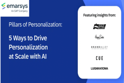 Emarsys Blog on Pillars of Personalization: 5 Ways to Drive Personalization at Scale with AI Covering examples on using AI for improving customer journey, recommendations, preventing churn, in-store AI recommendations and email personalisation