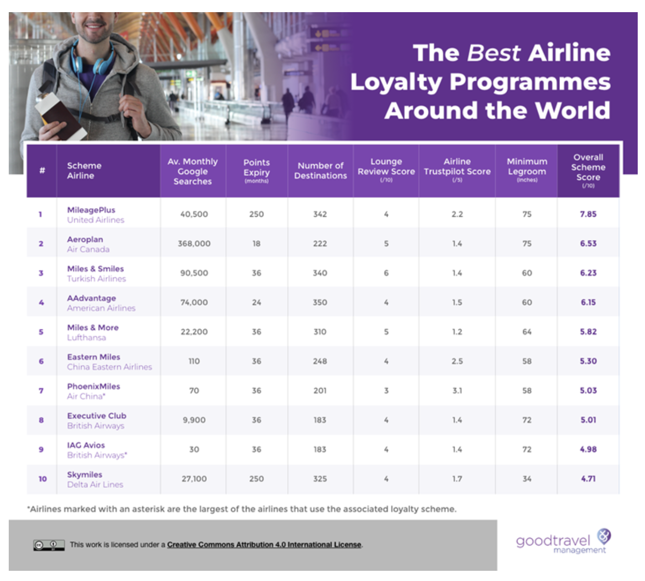 GLOThe most recent research conducted by Goodtravel Management examines the effectiveness of various customer loyalty programs offered by different airlines. In order to assess their quality, 59 loyalty schemes and the airlines associated with them were ranked from best to worst.