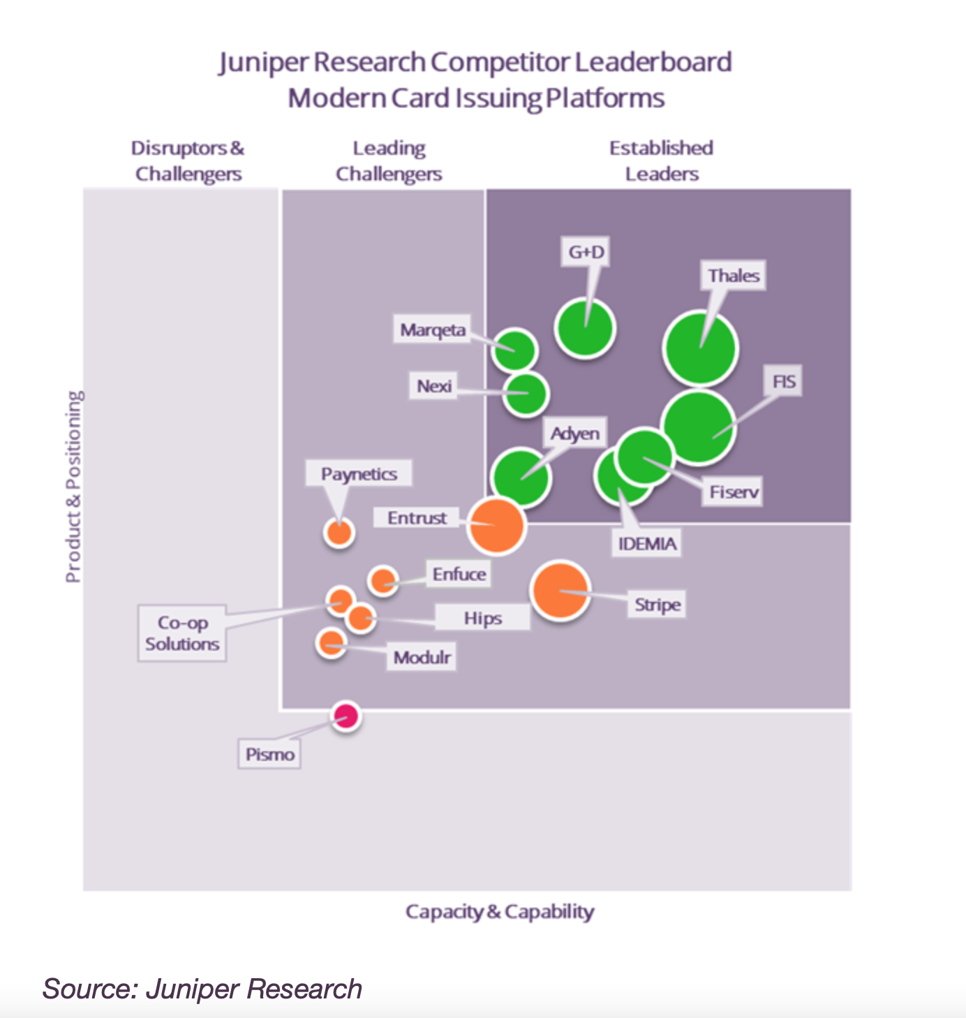 - Juniper Research released its latest Competitor Leaderboard for 2023. Underpinned by a robust scoring methodology, the new Competitor Leaderboard ranked the top 16 leading modern card issuing platforms, using criteria such as the completeness of their solutions and their future business prospects.