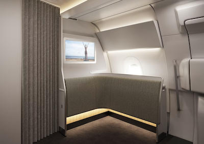 The aircraft will have six large enclosed First Suites designed to feel like a mini boutique hotel room with 2 metre flat bed, dining table for two, separate recliner chair and a 32” 4k ultra-high definition touch screen TV.