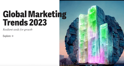 “2023 is set to be a year of disruption resulting in both obstacles and opportunities businesses can use to identify new levers for growth. Given the current economic pressures, CMOs will be asked to do more with less. The challenge is to remain squarely on the path to optimization and outcomes. Deloitte’s ‘2023 Global Marketing Trends’ report presents a comprehensive guide to help position businesses for success in this dynamic year and beyond, informed by strategic insights from business leaders and marketers alike.”