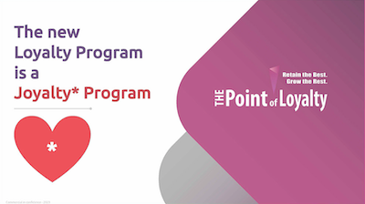 • Joyalty* Program is “Defined structure (planned spontaneity) of recognition, rewards and benefits delivered as one or a series of Moments of Magic (MoMs) to your members/customers without any expectation from them (surprise is critical) to generate the feeling of maximum joy and delight. The outcomes are social sharing, referrals, revenue and advocacy plus a deeper emotional connection to your brand.”
