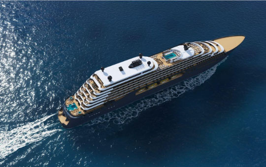 As part of the Float Out, the yacht’s dry dock was filled with water overnight, then moved to an outfitting dock where it will remain for the rest of its build, leading to sea trials in April 2024 and the start of its first season. Now afloat, final-stage construction will focus on completing interiors, fixtures, and fittings for suites, restaurants, and other public spaces that will welcome guests to experience a new journey of discovery at sea in less than a year.