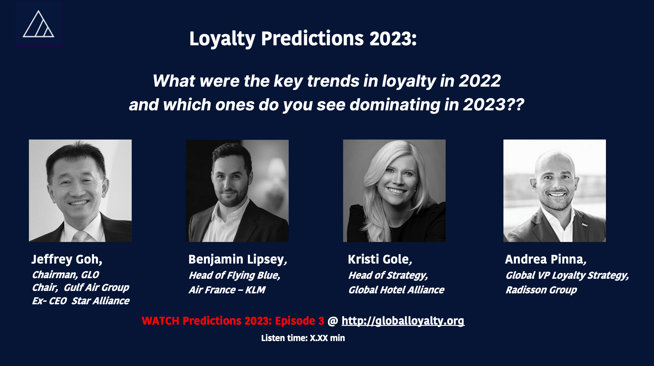 Featuring Heads of the largest global loyalty programs: Jeffrey Goh, Chair Gulf Air Group // Benjamin Lipsey, Head of Flying Blue Air France - KLM // Kristi Gole, Head of Strategy, Global Hotel Alliance // Andrea Pinna, Global SVP Loyalty Strategy, Radisson Hotel Group.